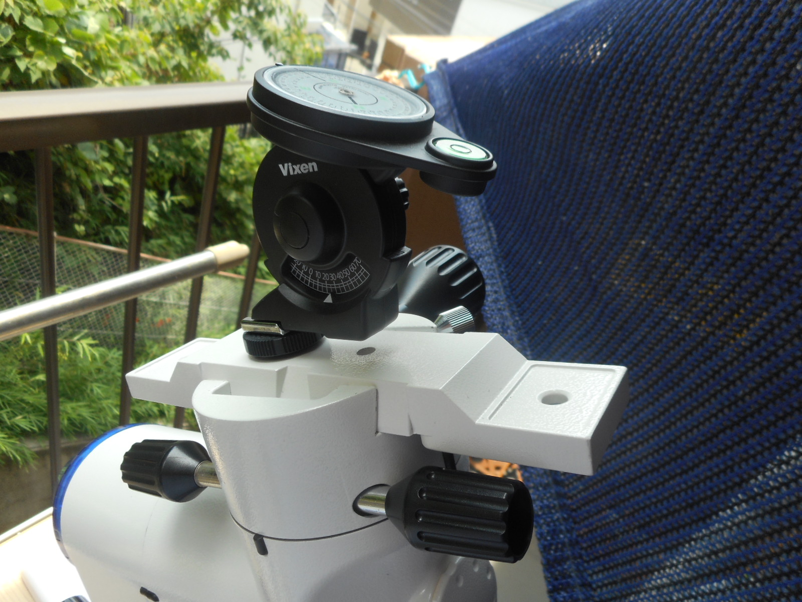 AP赤道儀などは最初からポーラメータをつけるシューがついているらしいがSXWにはそんなものはない。