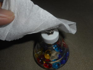 次にシルボン紙にエタノールをつけて、割りばしにくるくる巻き付ける。