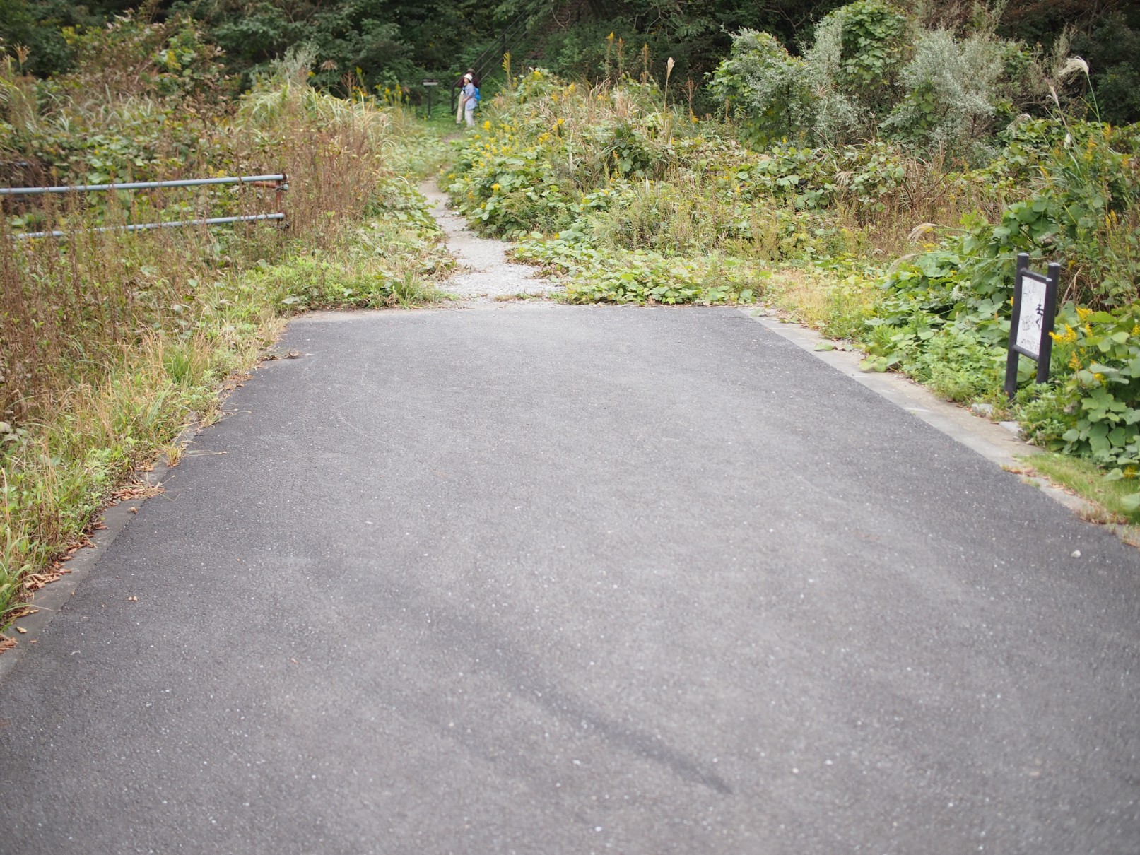 ゴルフ場を左に見ながら進むと舗装路が終わって山道に入る。