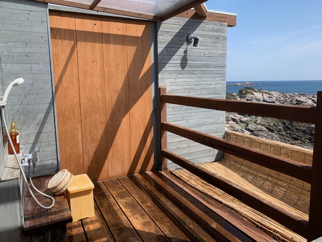 洗い場も露天。。てか、海に向かって壁とかなにもない。。