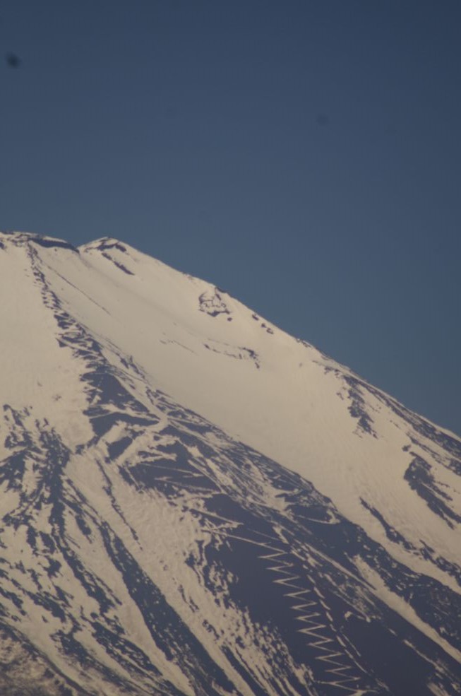 普通に300mm望遠で富士山てっぺんがアップになる。