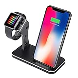 iPhone X ワイヤレス充電器とApple Watchスタンドに適用し、iPhone Xs/iPhone Xs Max/iPhone 8/8 Plus/Galaxy S9/S9 Pluste 8用、ベストホリデーギフト-(サブブラック)