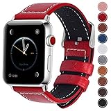 Fullmosa コンパチ Apple Watch バンド ベルト アップルウォッチバンド38mm 42mm Fullmosa apple ウォッチ4(40mm)3 2 1バンド 本革レザー 交換バンド レッド 38mm