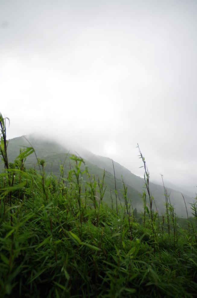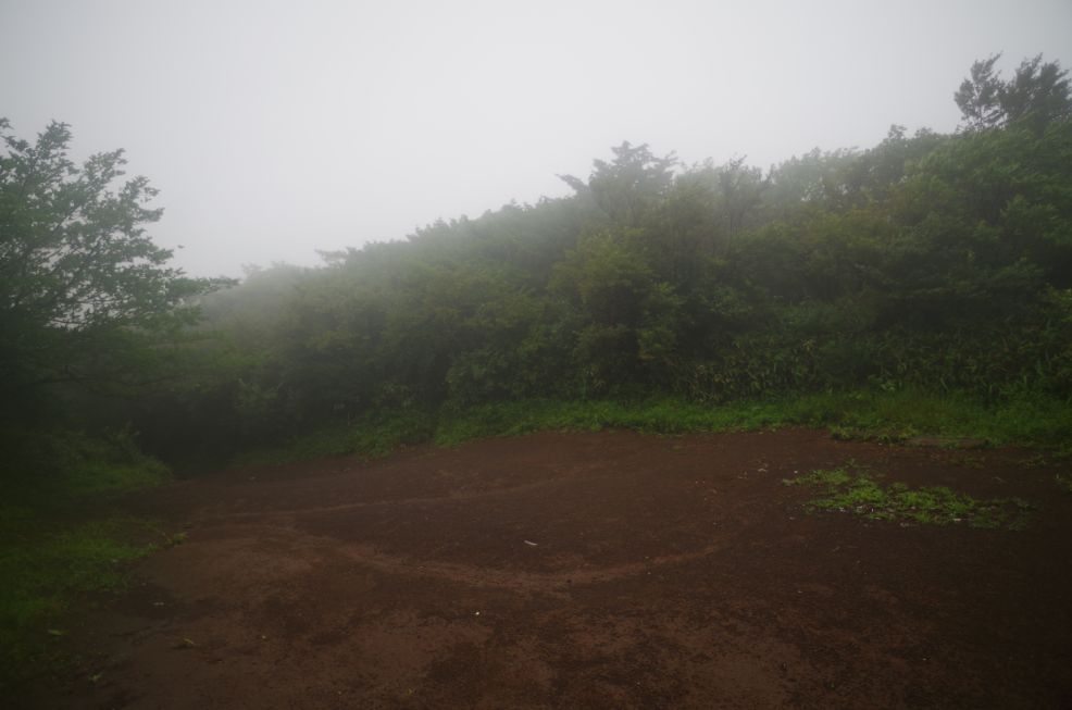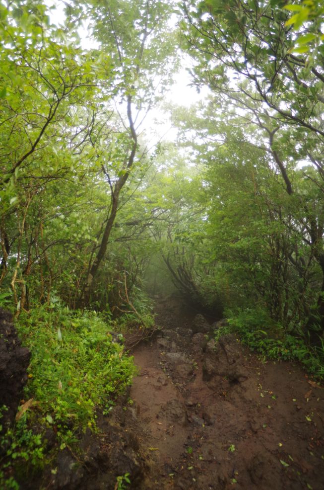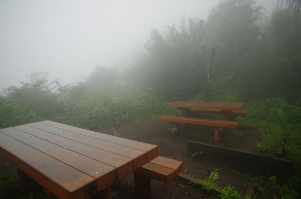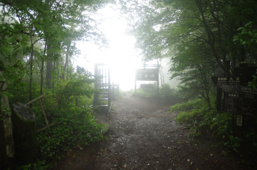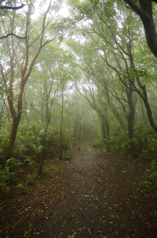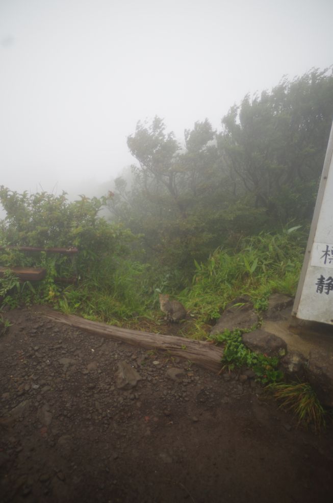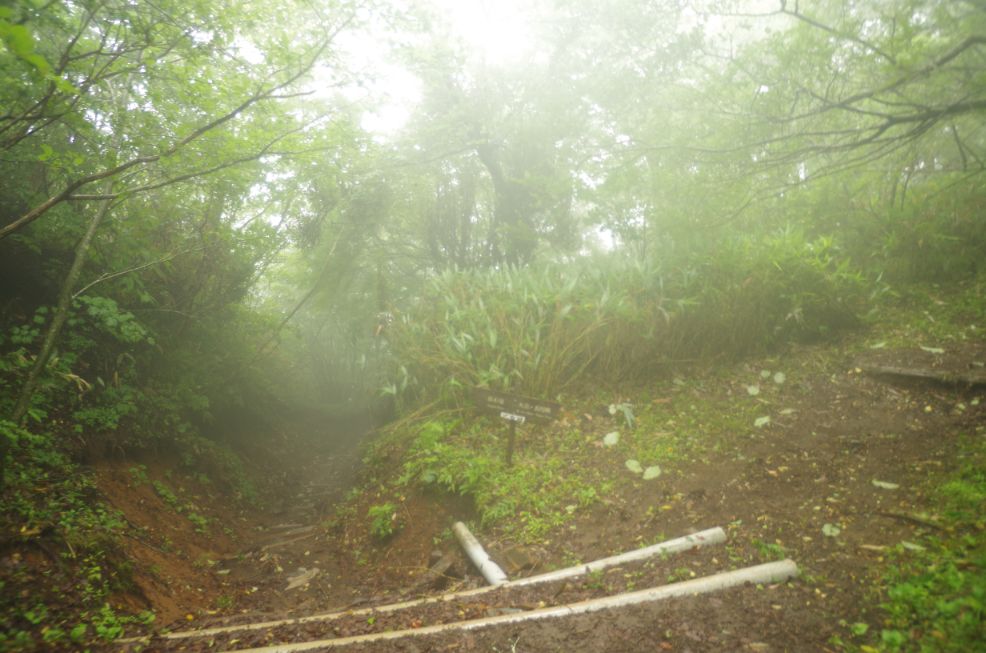 振り返ってみると明神が岳が一瞬見えた。。でもすぐガスで隠れる。