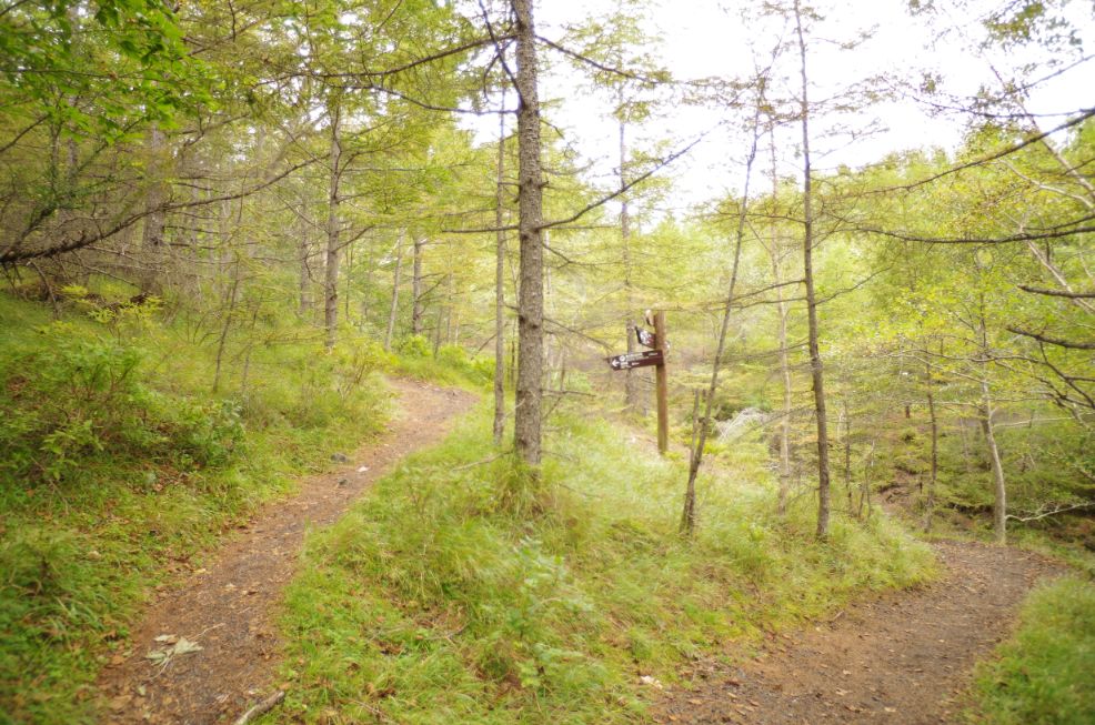 5分くらいで分岐にでた。右に進む。