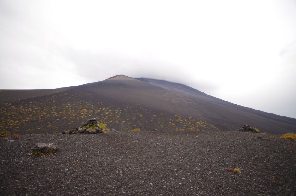 分岐から頑張って登る。ここは砂利(スコリアというらしい)がふかふかで登れない!!