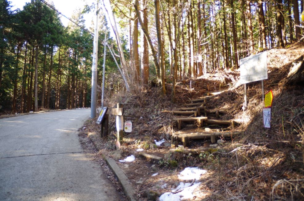 バス停を背にして右の道路を進み、登山口を目指す。概ね20分くらい道路を歩く。