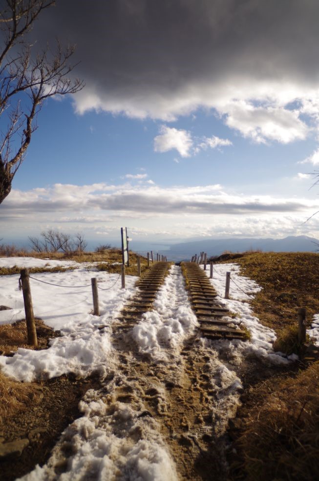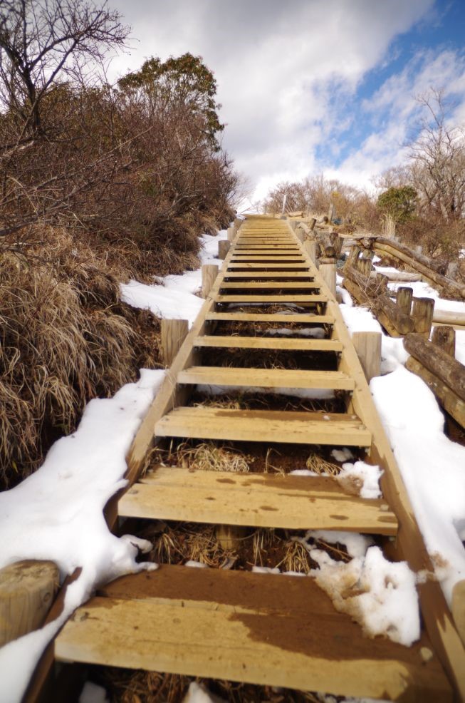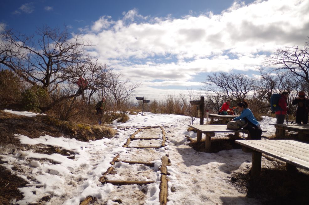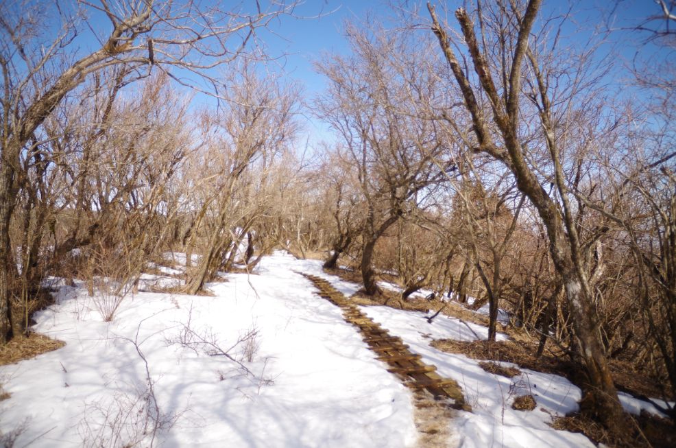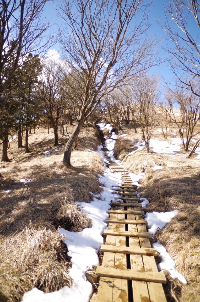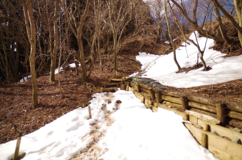 烏尾山に向けて出発。もう大半が雪っぽいからアイゼンつけたほうがいいかなと思ったけど結構泥まみれだったのでもう少しノーアイゼンで行ってみる。