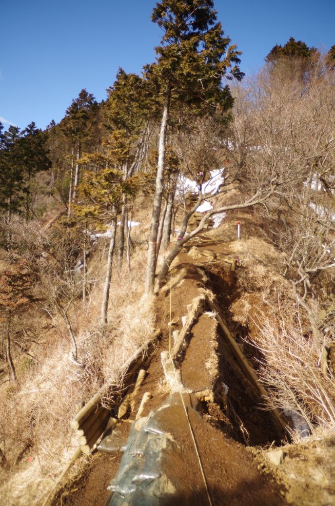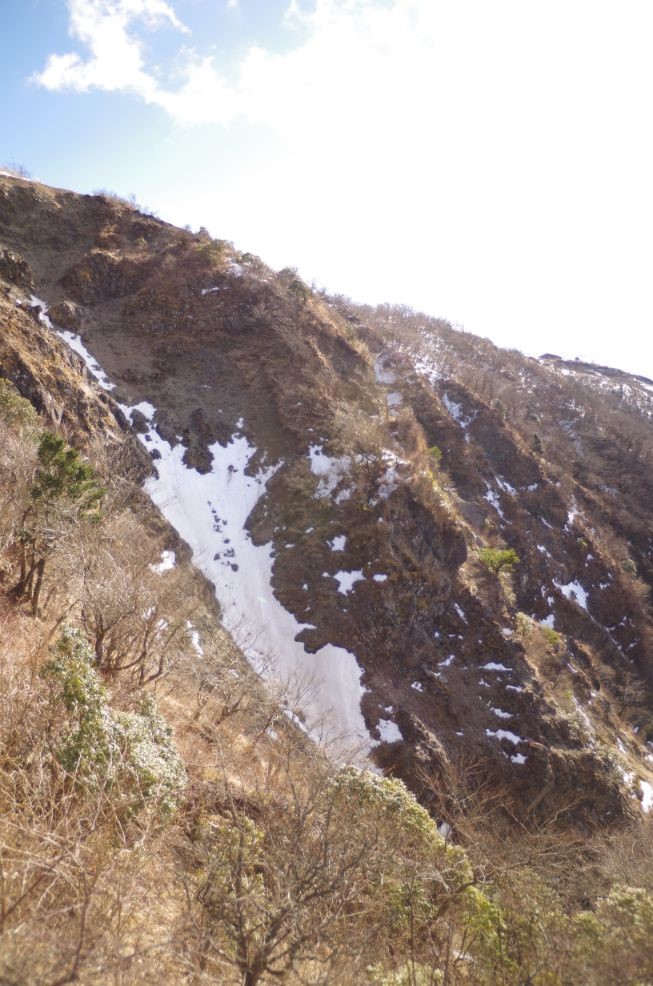 ここから鎖場。雪と合わさって結構危険。。すでに2回くらいこけた。