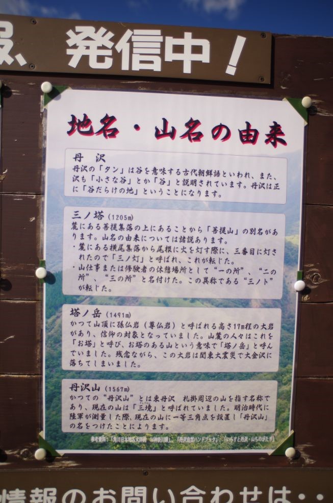 丹沢と塔ノ岳とかの名前の由来が表示されていた。