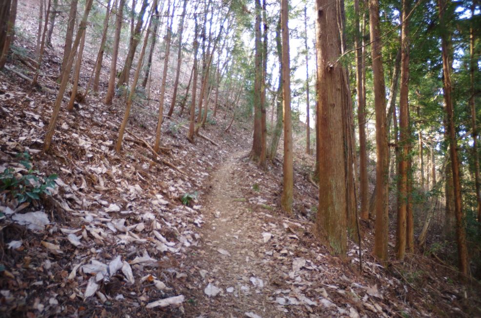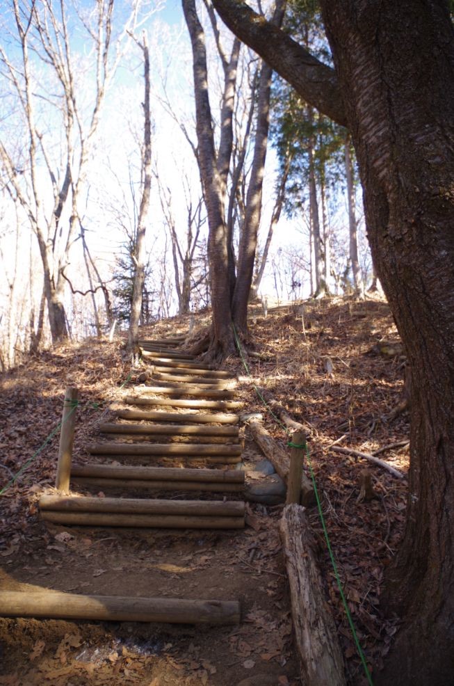 さらに登ると山道に入る。雪もなく歩きやすい。