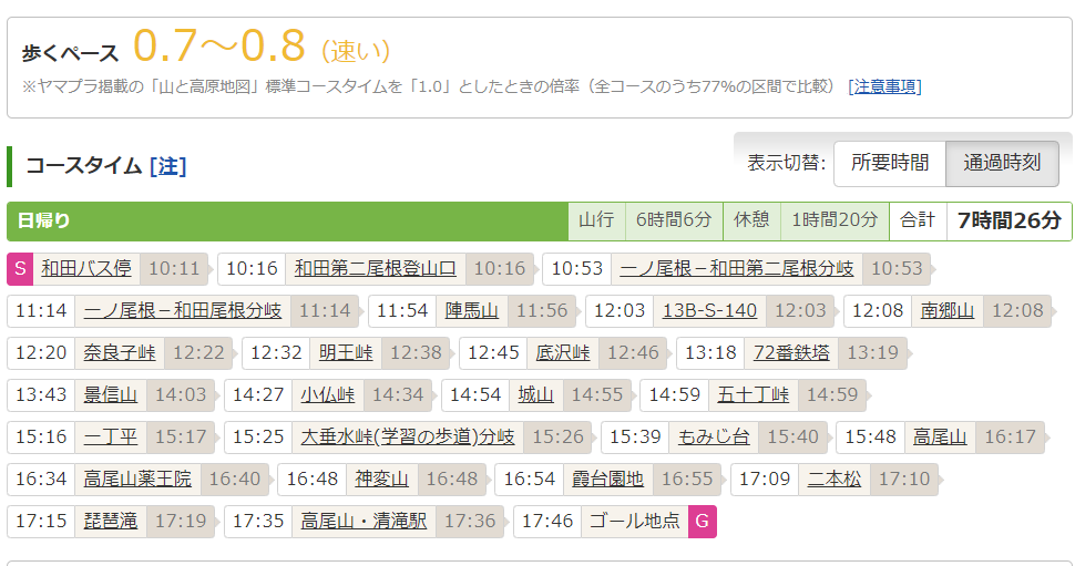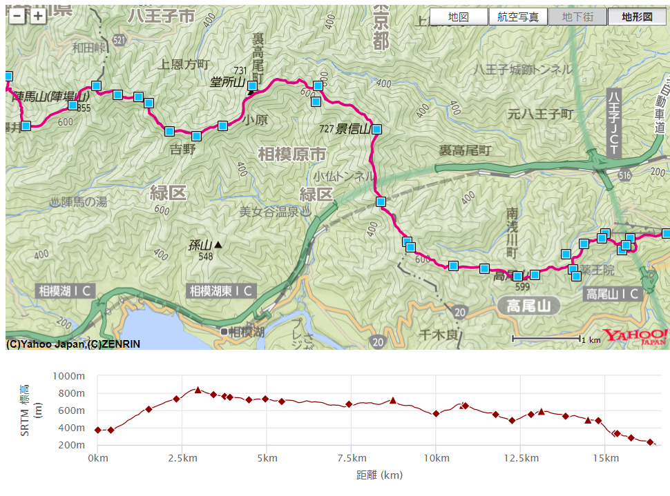 景信山から概ね2時間10分くらいかかった。陣馬山から3時間50分くらいだった。