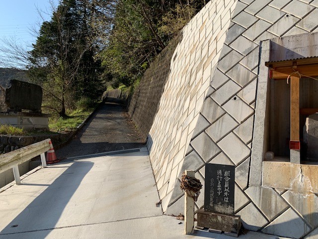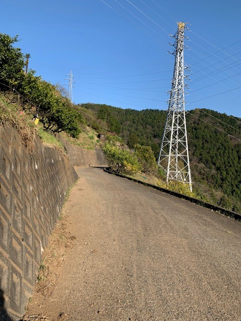 ずーと下っていくと本来の道が新東名高速道路を作ってるため、大きく道を変えている。 途中からもうミカン畑の車道。。足が。。