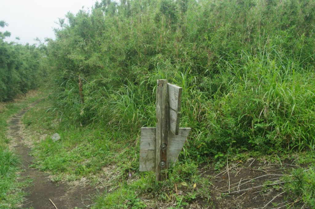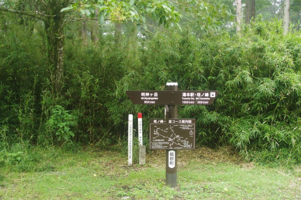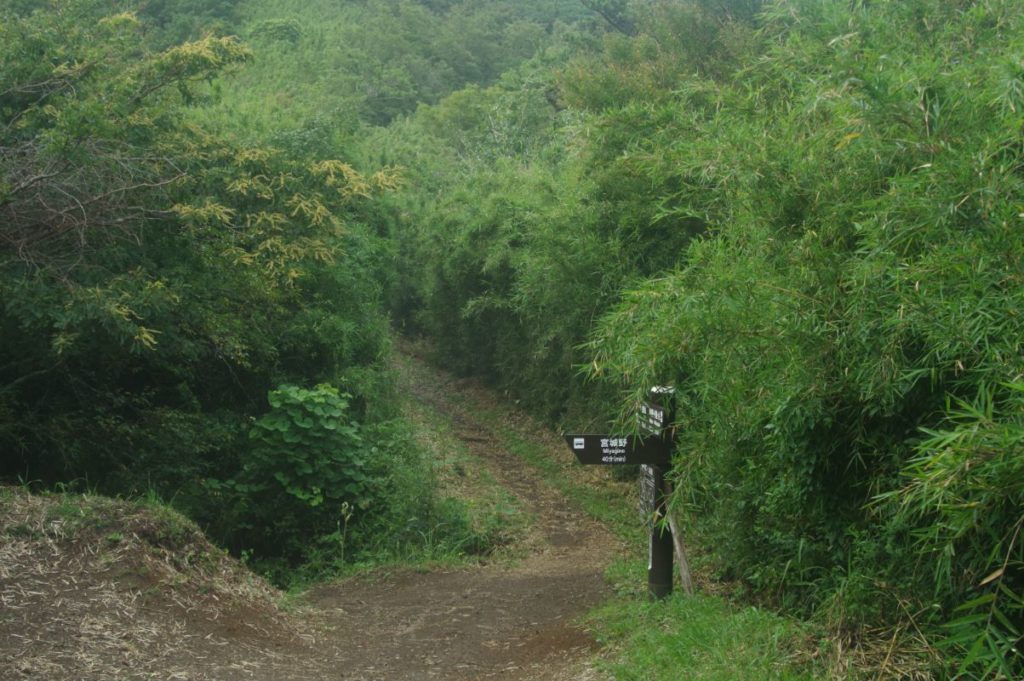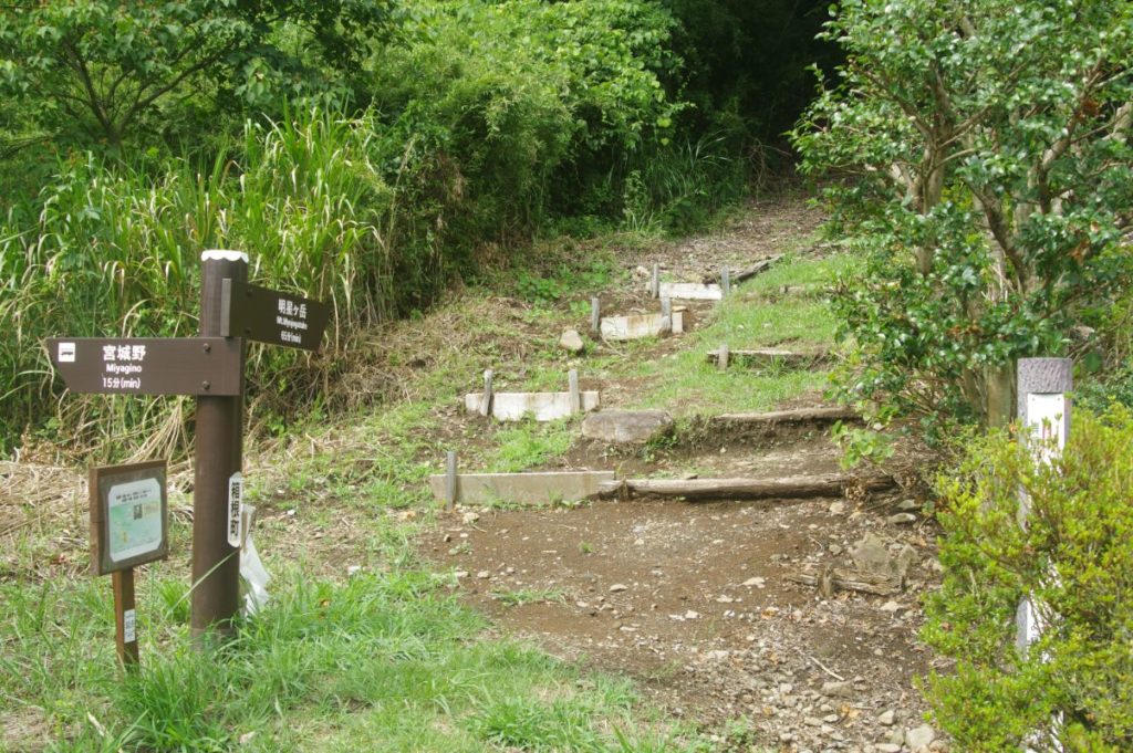 宮城野分岐。この道を真っすぐ登ると明神ヶ岳。。ここが900Mくらいだから200くらい登ることになる。。