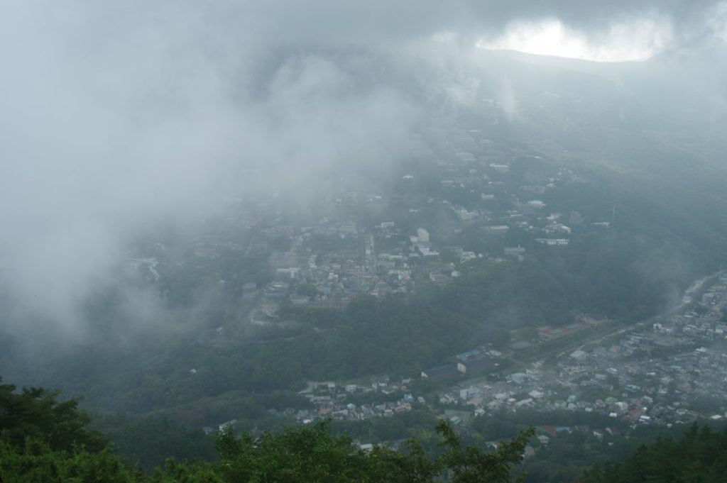 一番上からは強羅近辺がよく見えた。晴れてればよかったのに。