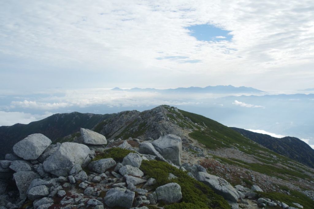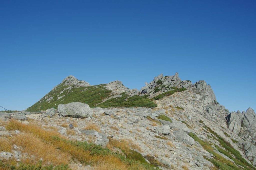 駒ケ岳からテン場に戻りテント撤収後、中岳山頂経由で下山。中岳山頂。