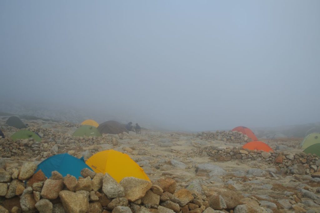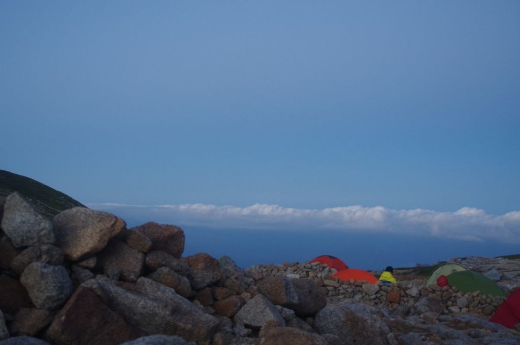 とりあえず、テント張って景色見るとすごいな。雲の上。