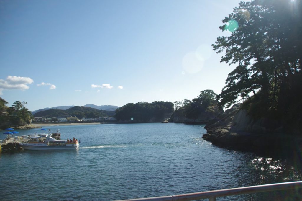 なんでも伊豆はジオパークがたくさんあるらしい。ここもその一つらしく、小島が連なっていて、そこに船でクルージングしてるみたい。