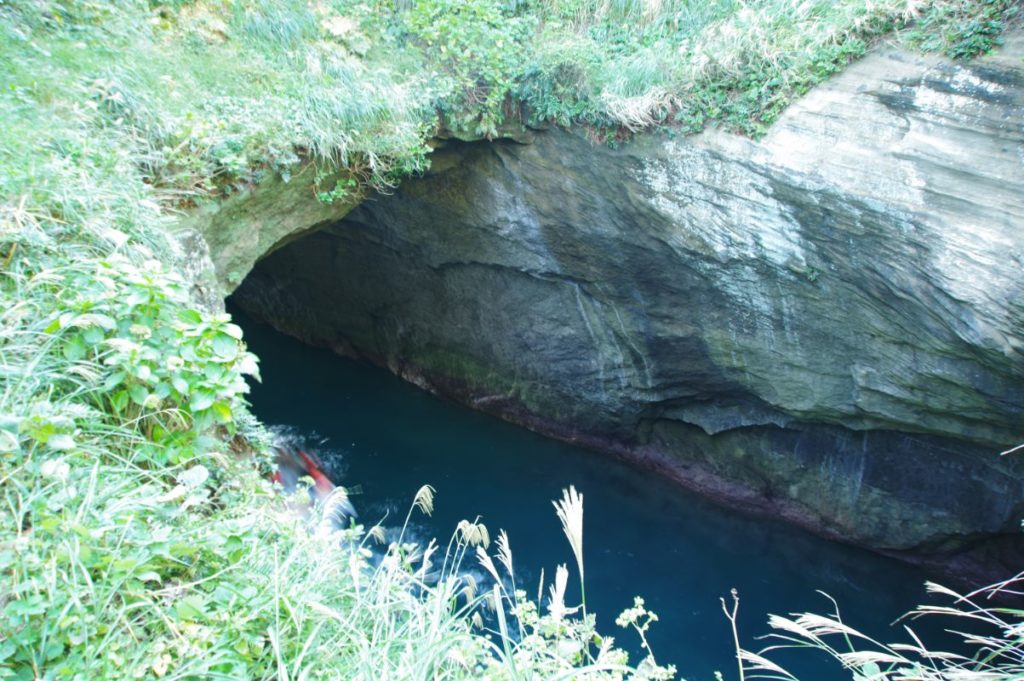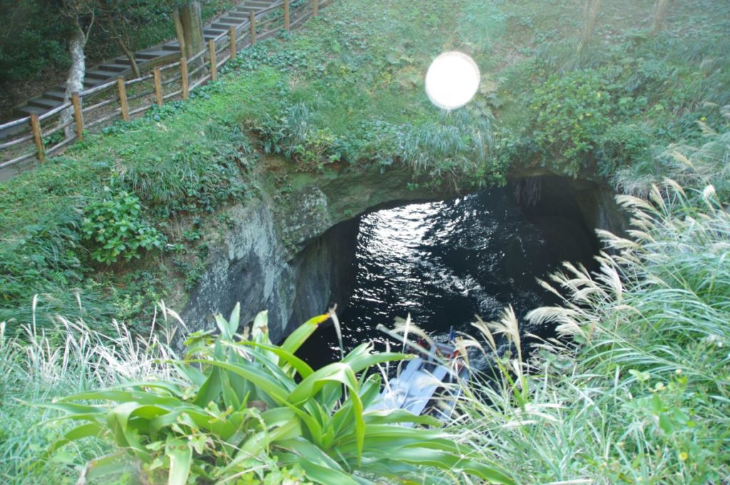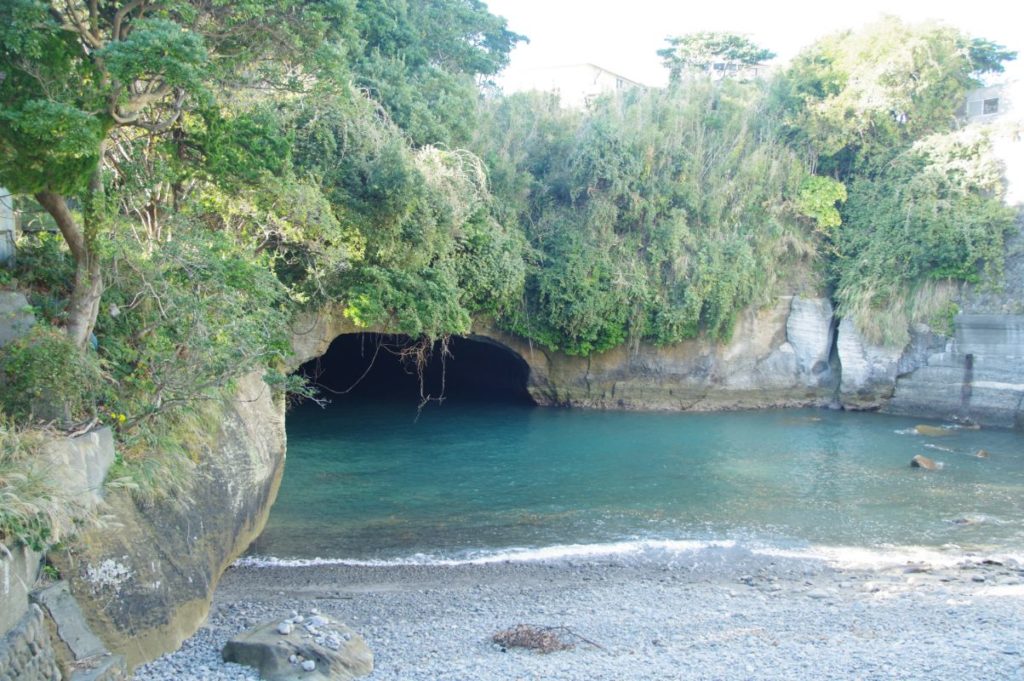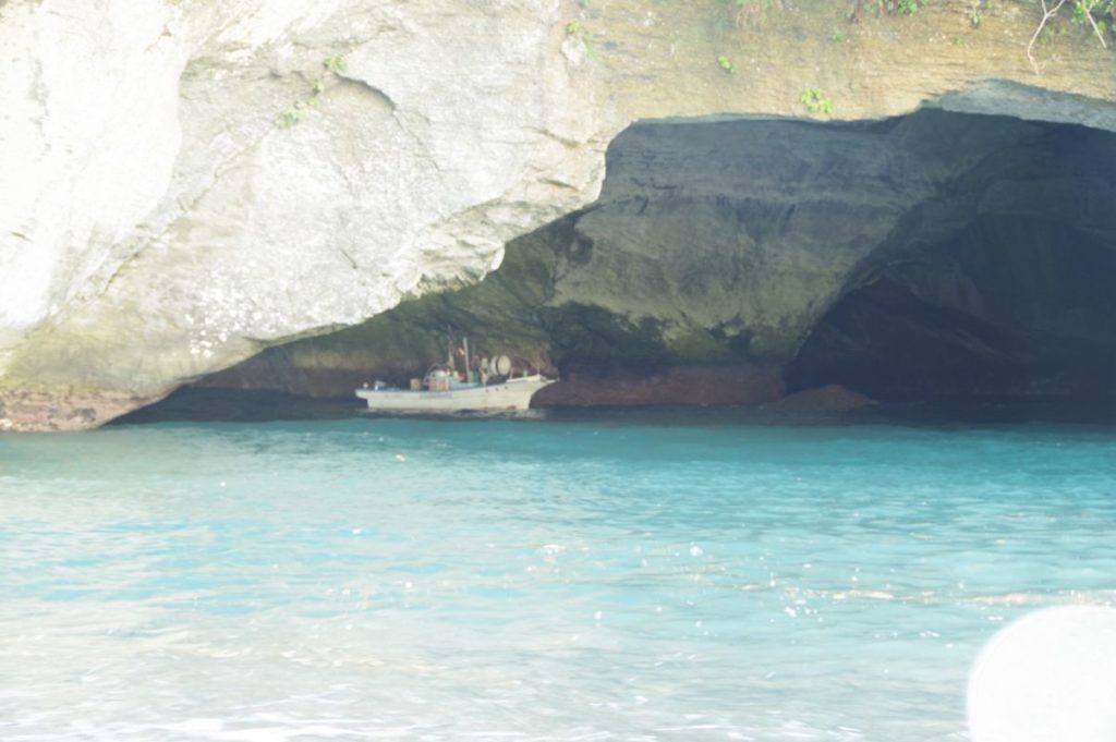 砂浜に降りてみたら洞窟内に船がいた!漁船?