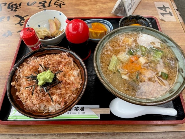 ここら辺はワサビが有名だから、ワサビ丼というものがあった。あと、猪汁。。