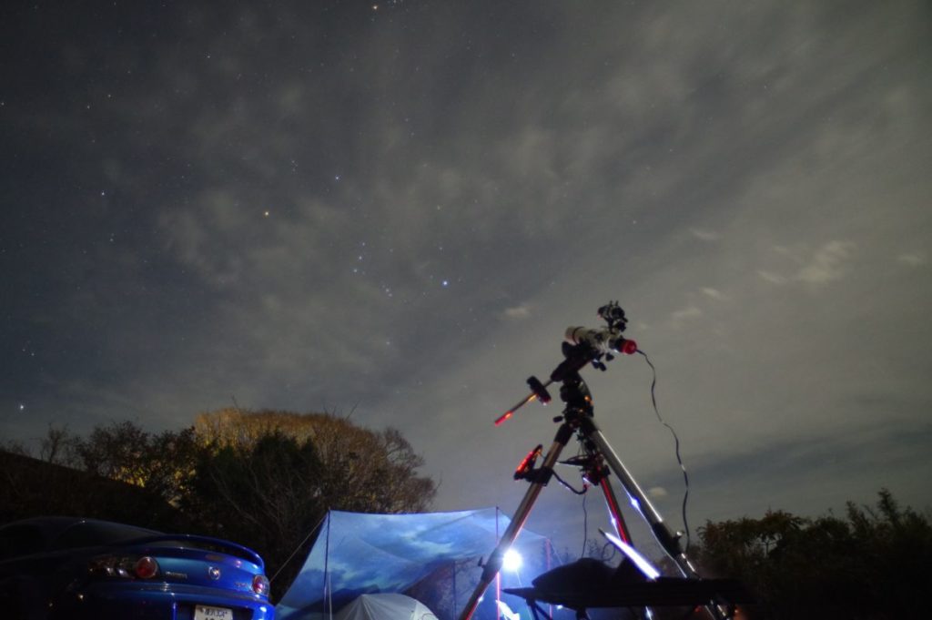 燃える木星雲。 ここで全天が雲になってしまい終了した。 しかし、この日はさんざんで、夜中にトイレに行った帰りに転びランタンが壊れるし、突風が吹き始めてタープがなんどか崩壊してうるさくてあまり寝れなかった。 タープはきびしいな。。今度は前室付きのテントにしようかな。ソロだけど。
