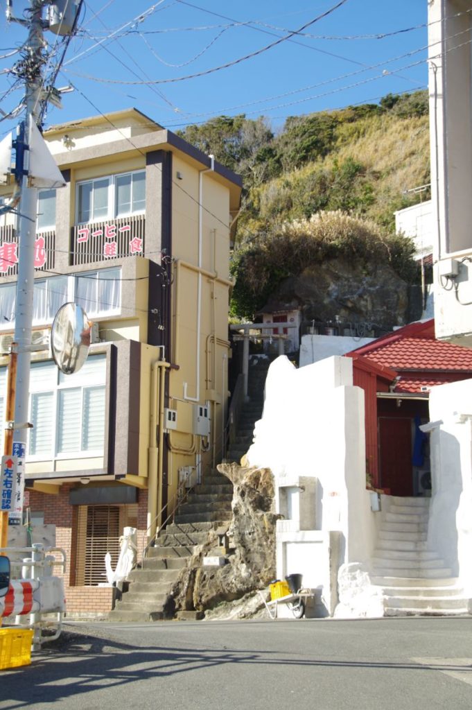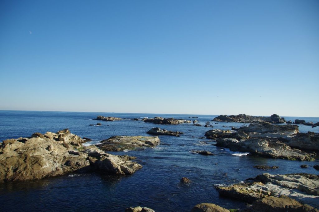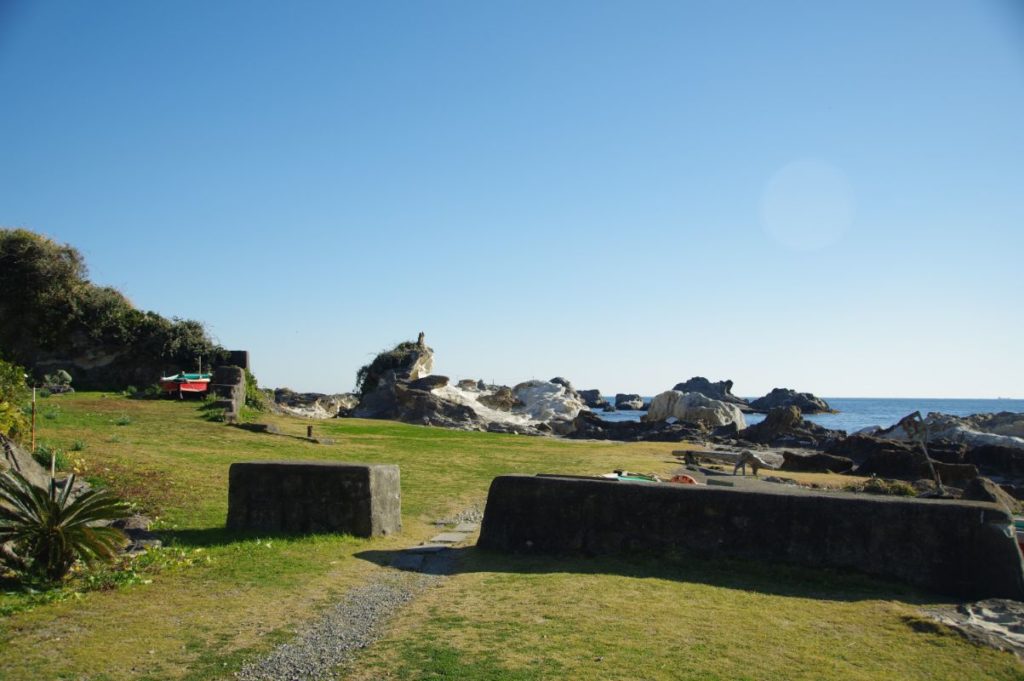 で、仁右衛門島の近くは車止められないため、太海磯釣りフラワーセンターというところに車を止め、300m歩く。