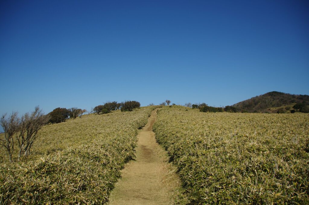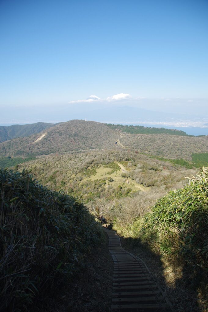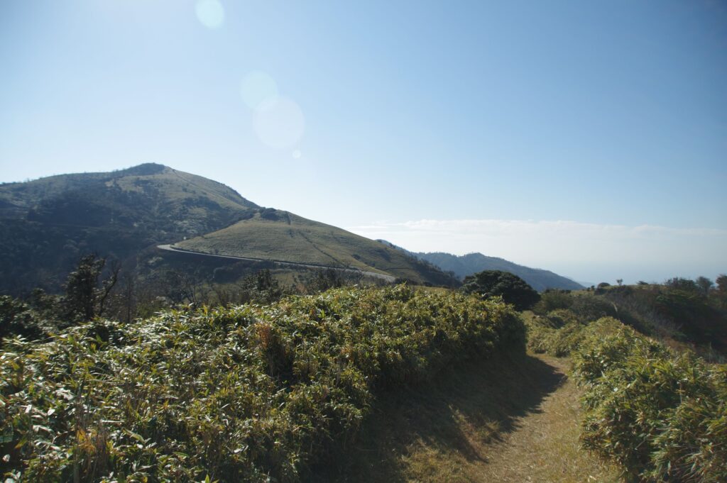 小達磨から一度下る。正面に達磨山と伊豆スカイラインが見える。解放感がすごい。