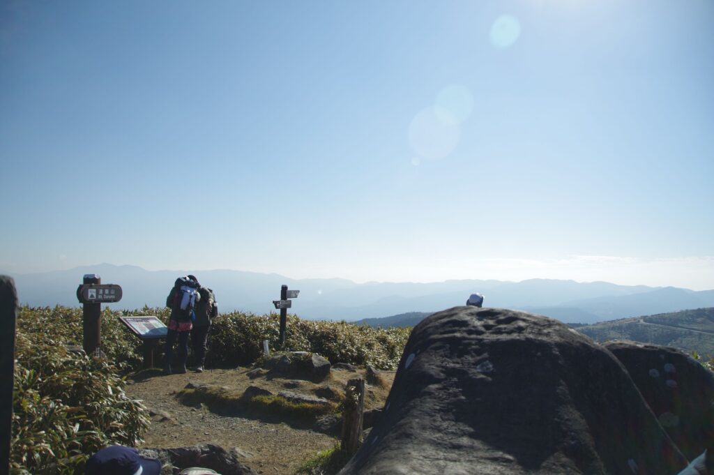 どうにか達磨山山頂到着。人が多い。。ここら辺の山はベンチとかないんだ。。