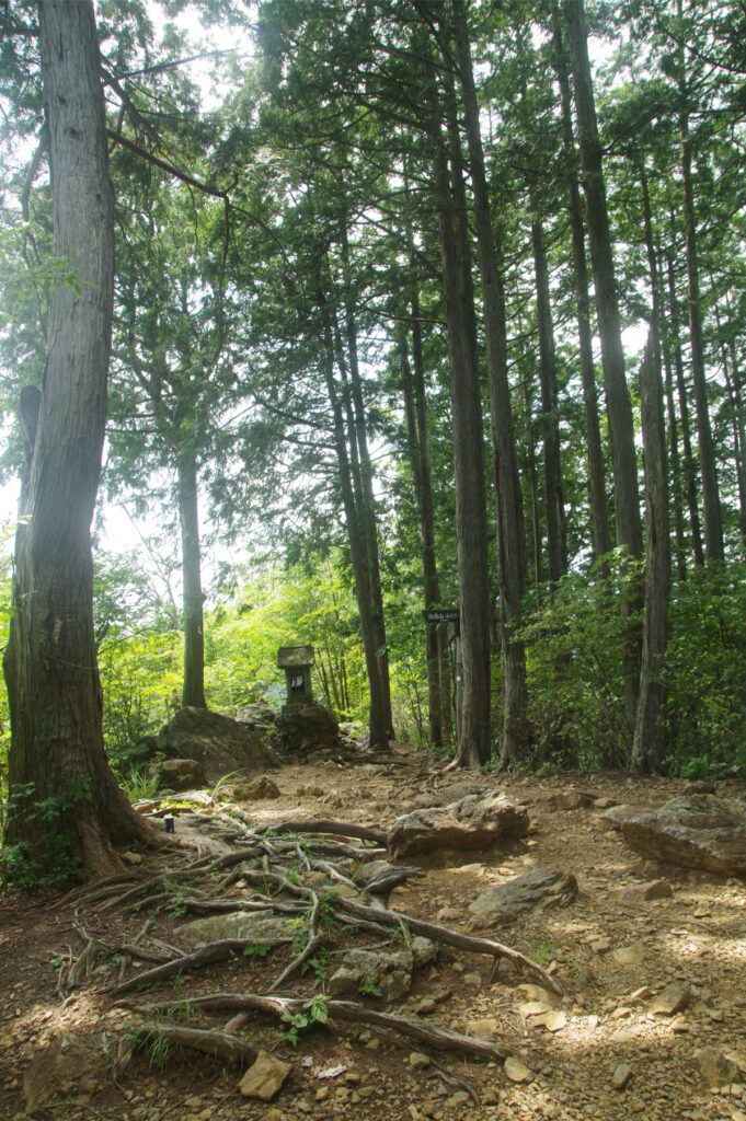 奥の院からさらに鍋割山に向かおうと思い、奥の院の一番上に向かったが、岩場、鎖場があり、かなり急で、鍋割山に向かうために一度下らないといけない。。うん、無理だ。やめよう。