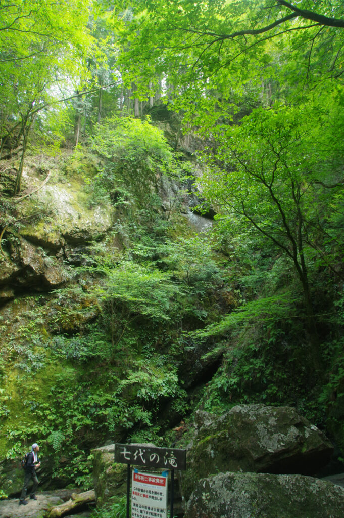 急な鉄階段と鎖場を200Mくらい下って七代の滝に到着。