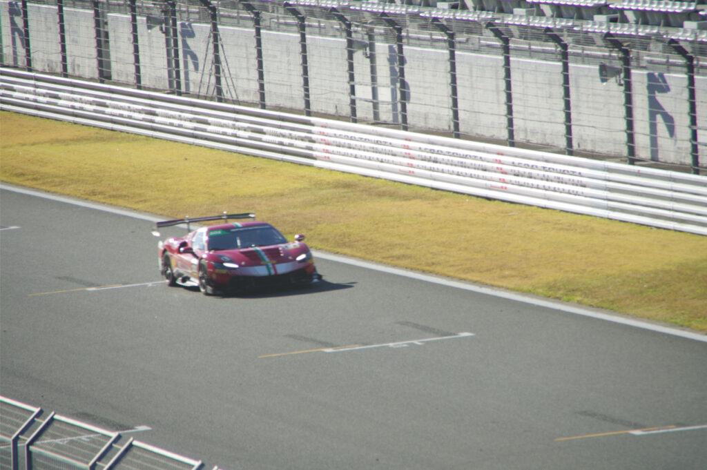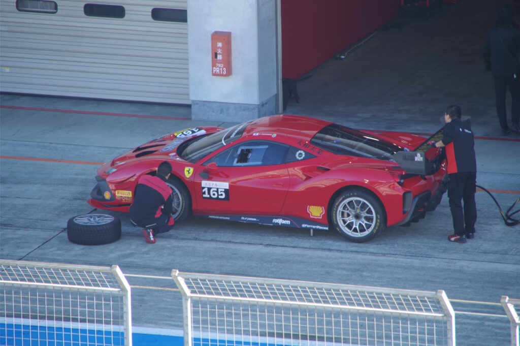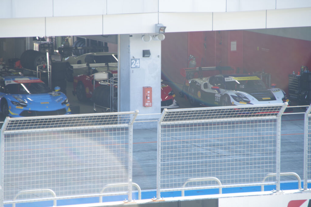 メインの観覧席からピットが見えた。全然走ってないけど、整備してた。走るのかな?