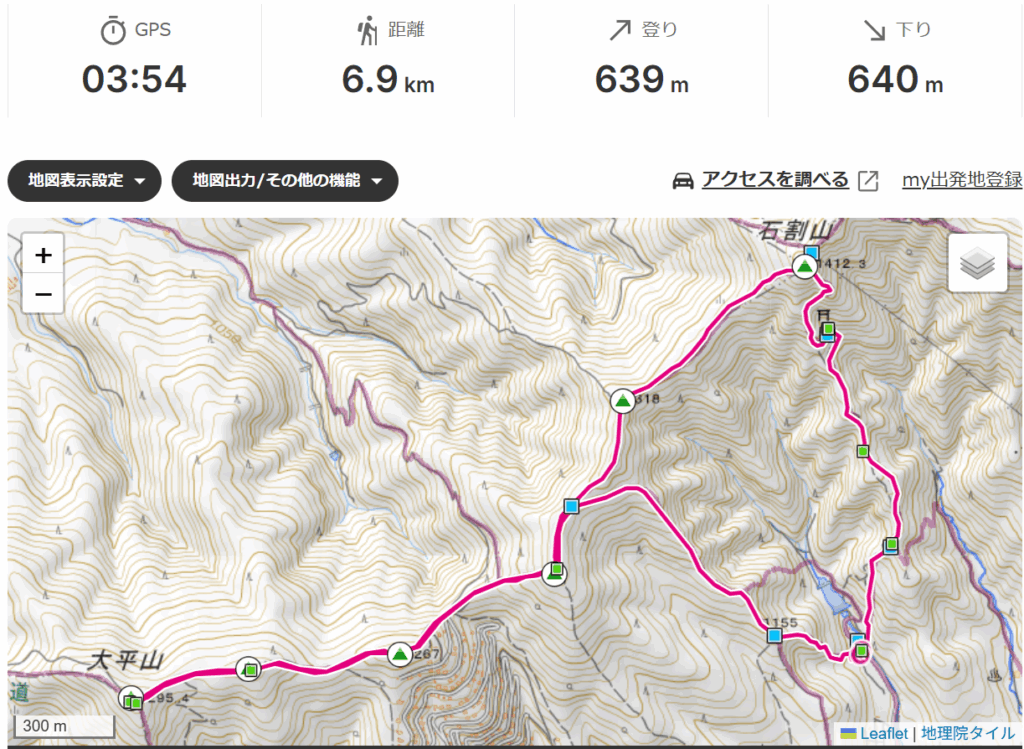大平山到着。道は整備されてるし、あるきやすいんだけど、なにより会談が多くてつらい。。