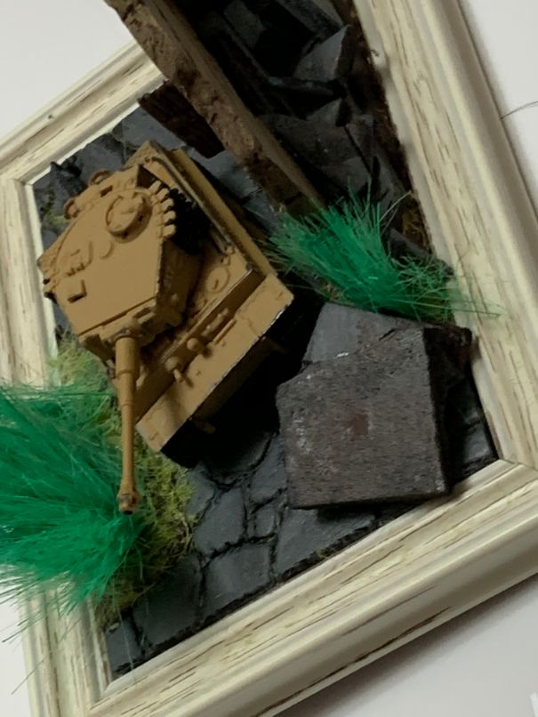 写真立てに100均で買ったカラーボードで石畳っぽく模様を描いて爪でなぞったら案外よくできた。
