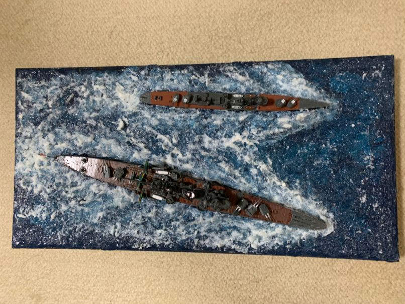 まず、軍艦の重巡羽黒と駆逐艦照月のプラモデルと45×25㎝の板と粘土を100均で買った。
